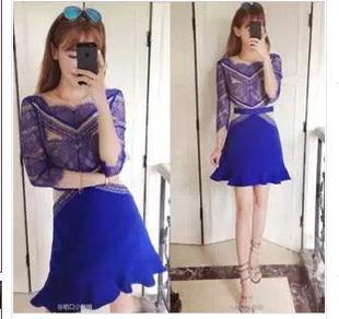 2014秋裝新款左岸瀟 嗆口小辣椒 李小璐明星同款電光藍蕾絲連衣裙 /