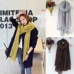 棉麻圍巾純色文藝超長披肩兩用亞麻圍巾森女秋冬保暖圍脖2014新款 /