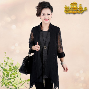 批發2014年秋裝新品上衣 中老年女裝媽媽裝兩件套 雪紡蕾絲T恤 /