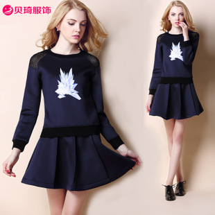 2015新款歐美大牌休閑裙套裝 女士套頭衛(wèi)衣加拉鏈高端A字短裙套裝 /