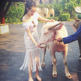 原版好質量左岸瀟勾花蕾絲長流蘇半裙+短上衣 時尚兩件套 /