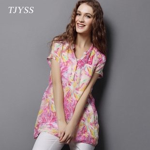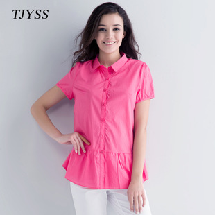 天嬌一生水2015新款夏裝胖mm時尚大碼襯衫女寬松OL風(fēng)純色短袖襯衣 /