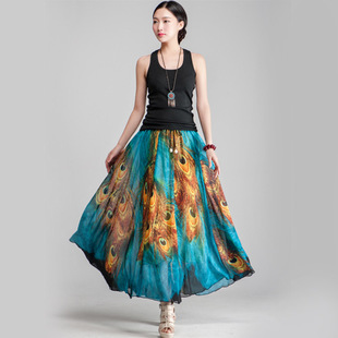 實拍 春夏新款民族風修身度假大擺連衣裙半身裙 波西米亞半身裙 /