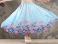 T8655民族風女裝長裙 夏款印花大擺裙雙層雪紡拼接沙灘裙長半身裙 /