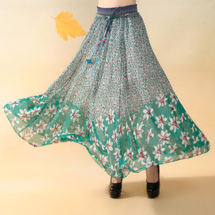 E9505#2015新款民族風小碎花半身長裙波西米亞雪紡印花大擺裙 /