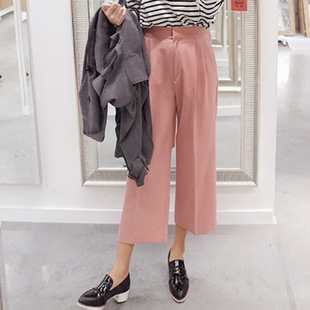 2015春夏新品韓國東大門純色百搭松緊腰闊腿褲九分休閑褲子女式 /