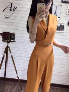 歐洲站2015最新時尚個性潮流修身上衣闊腿長褲套裝 /