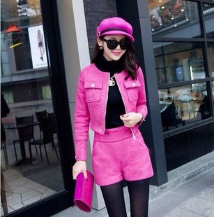 簡介: 建議零售價 ¥599.00 貨號 m1209 產地 廣州 主圖來源 實拍有模特 貨源類別 現貨 風格 韓版 圖案 格紋 面料 皮絨 款式 褲套裝 上衣款式 外套 褲款式 直筒褲 褲長 短褲 工藝 高溫定型 上市年份/季節 2015春季 顏色 玫紅紫,藍色 尺碼 S,M,L