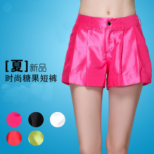 歐洲站2015夏季新款百搭休閑短褲女款糖果色短褲闊腿褲大碼女裝 /