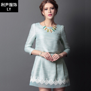 2014歐洲站女裝秋裝新款 名媛小香風套裝長袖品牌連衣裙 爆款批發 /