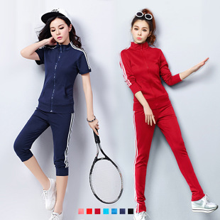 15新款休閑套裝女春夏兩件套韓國顯瘦純色學生大碼體育運動服批發 /
