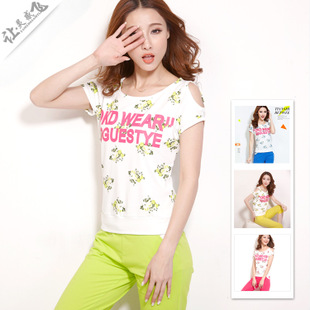 2015新款運動休閑套裝女夏季修身短袖印花薄款兩件套學生大碼精品 /