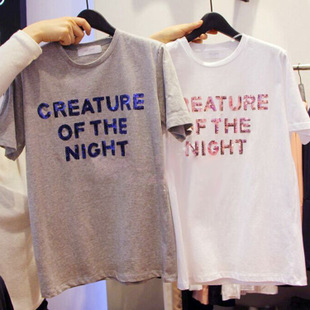 韓國代購春夏季新款T恤女短袖字母亮片鑲嵌上衣時尚休閑潮 /