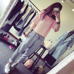 A0113#2015春夏新款爆款女裝蝙蝠袖寬松短T恤+哈倫褲女式套裝 /