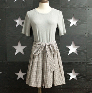 vivi外貿原單2015女裝夏新款韓版棉圓領短袖拼接連衣裙短裙批發 /
