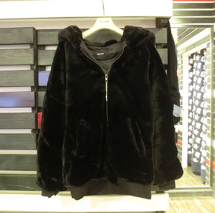 韓版韓國東大門女裝秋冬新款仿皮草加厚純黑色毛絨寬松大衣外套 /