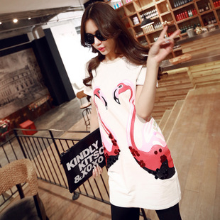 2015新款春夏裝韓版女裝天鵝圓領長款純棉修身時尚T恤打底連衣裙 /