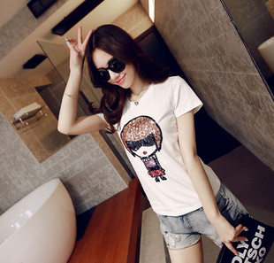 阿里巴巴批發網新款夏季女裝韓版亮片短袖女t恤打底衫 地攤貨源 /
