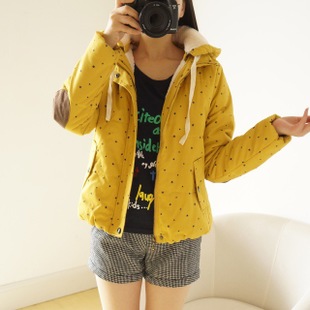 冬裝新款棉襖 日系學院風星星印花羊羔絨加厚連帽棉衣 女保暖棉服 /