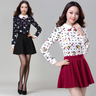 2015春裝新款襯衣韓版印花長袖打底衫 娃娃領襯衫女 /