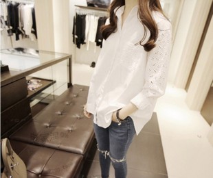 2015新款 韓版女士職業OL氣質長袖繡花鏤空寬松大碼襯衫 /