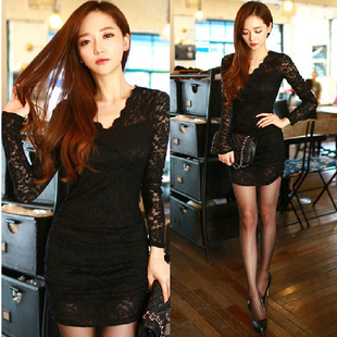 2014新款韓國性感氣質女裝假兩件套秋蕾絲長袖秋裝連衣裙 /