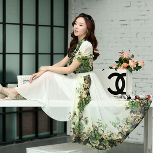 2015新款真絲雪紡連衣裙春夏波西米亞修身沙灘連衣裙長裙廠家批發(fā) /