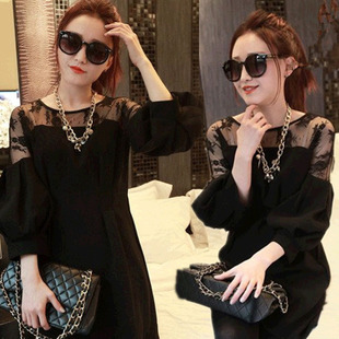 2015春裝新款歐美加大碼女裝胖mm顯瘦冬裝加肥蕾絲衫連衣裙春秋裙 /