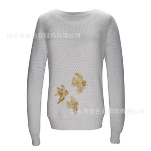 2015新女圓領v領女開衫羊絨衫女釘珠圖案圓領長袖套頭毛衣打底 /