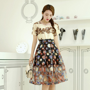 春夏女裝連衣裙兩件套優雅時裝簡約大氣奢華貴氣舒身面料印花女裙 /