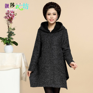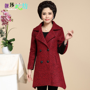 2015春冬新款羊絨中長款 媽媽裝外套中老年服裝女 毛呢大衣女批發 /