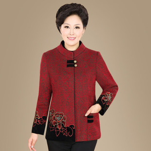 中老年女裝秋裝毛呢外套中年大碼媽媽裝秋季新款長袖老年服裝批發(fā) /