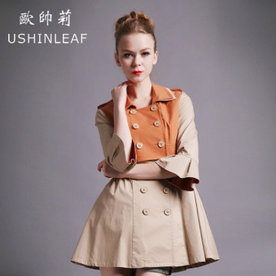 簡介: 建議零售價 ¥539.00 貨號 1438553 產地 杭州 品牌 自主 主圖來源 實拍有模特 產品類別 風衣 貨源類別 現貨 是否庫存 否 風格 歐美 圖案 拼色 面料 棉類混紡 成分 60%棉40%聚酯纖維 里料 滌綸 厚薄 普通 版型 裙擺型 衣長 中長款(65cm<衣長≤80cm) 領型 翻領/POLO領 袖長 七分 衣門襟 雙排扣 是否有腰帶 無腰帶 流行元素 拼接,撞色 上市年份/季節 2015春季 顏色 姜黃,咖啡色 尺碼 S,M,L,XL,XXL
