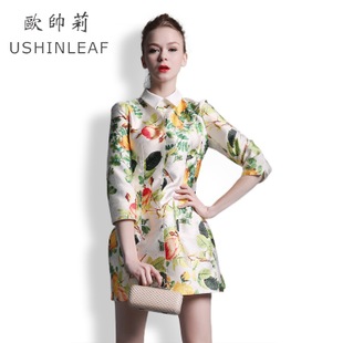 代理加盟2015春季歐洲站女裝 歐美連衣裙 印花A字裙氣質修身裙子 /