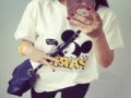 189#2015新款韓版卡通米奇印花磨毛加厚寬松打底衫短袖t恤 /