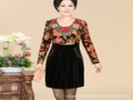 批發春裝 韓版中老年女裝加大碼連衣裙 金絲絨假兩件長袖高腰裙 /