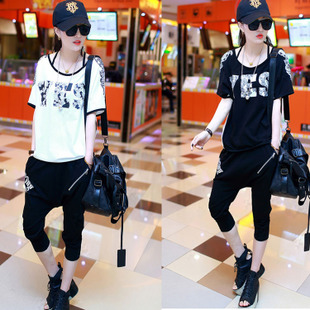 2015夏裝新款女休閑套裝 短袖t恤套裝 學生寬松運動服褲套裝 /
