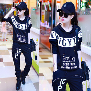 誠信通批發(fā)貨源韓版現(xiàn)貨印花株洲兩件套白色純棉黑色女裝衛(wèi)衣套裝 /