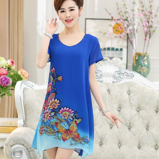 批發2015夏裝新款 中老年女裝 韓版短袖印花雪紡連衣裙 大碼女裝 /