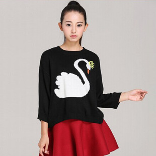 火拼買50件送3件秋裝圓領套頭毛衣蝙蝠袖 白天鵝皇冠圖案針織衫 /