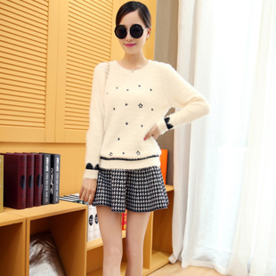 2014秋季韓版套頭馬海毛針織衫提花長毛時尚百搭女裝毛衣 /