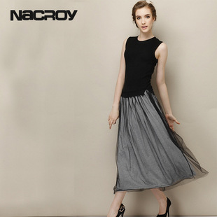 夏新款歐美女裝 李冰冰同款針織網紗中長款背心連衣裙 一件代發 /