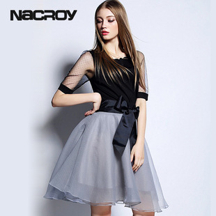 一件代發2015夏新品燒花荷花領短T桖喬其紗網紗蓬蓬裙休閑套裝 /