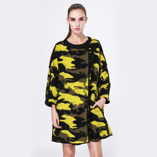 秋冬高檔羊毛呢子外套 迷彩呢子大衣寬松大碼爆款廠家一件代發 /
