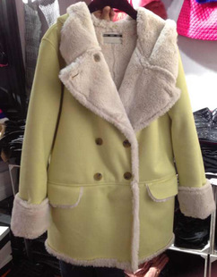 2014韓國東大門代購麂皮絨中長款加厚冬大衣外套 女 一件代發 /