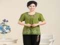中老年女裝夏裝新款繡花短袖T恤七分褲子兩件套 工廠直銷一件代發 /