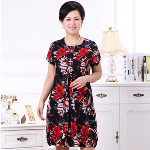 中老年女裝夏季新款印花大碼媽媽裝短袖連衣裙 廠家直銷 一件代發 /