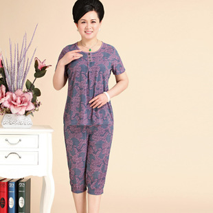 中老年女裝夏季新品媽媽裝 寬松大碼短袖T恤套裝40-50一件代發 /