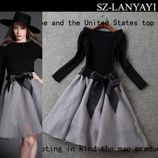2015早春新款歐美時尚一字領上衣+蝴蝶節松緊腰中裙套裝T2781 /