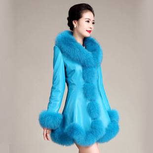 72海寧真皮皮衣女中長款 2014新款海寧綿羊皮大毛領加棉皮衣外套 /